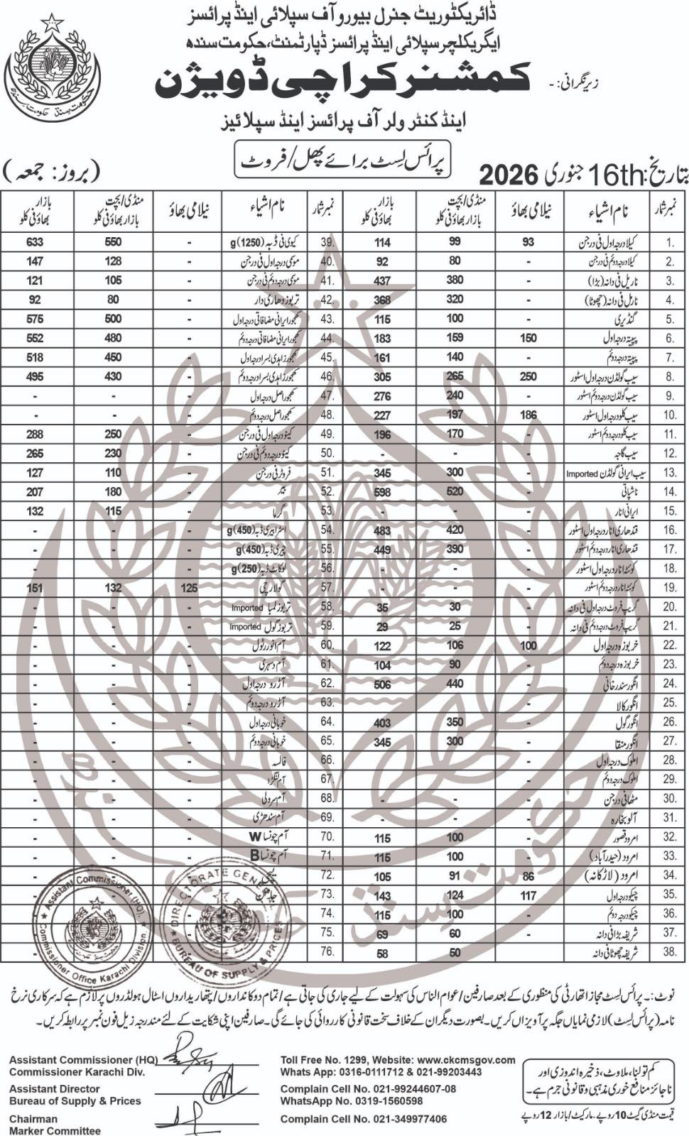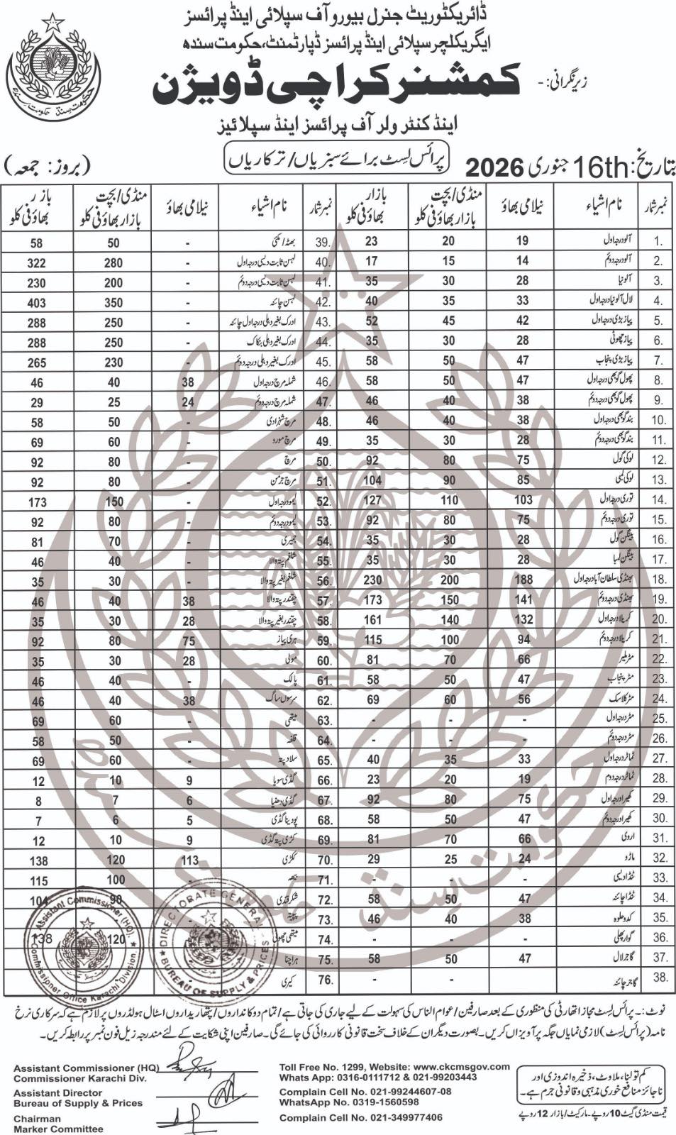 | Vegetables 16/01/2026 | 0.00 | View/Download |
